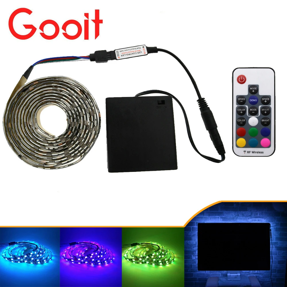 . Goede Kopen 5050 LED Strip 5 v TV lichten RGB Black PCB IP20 IP65 Waterdichte Decoratieve Licht lampen met RF contrllor 5 v 4 * AA batterij Goedkoop.