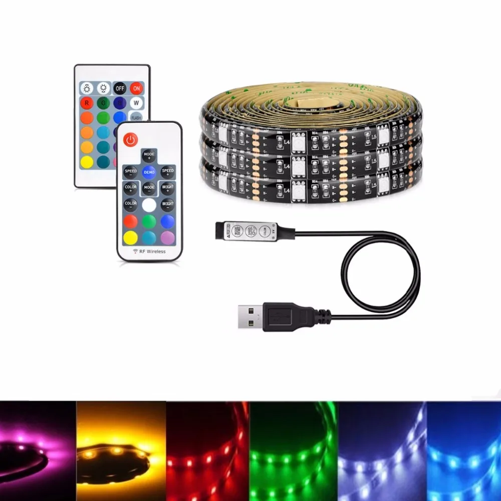 Kopen Goedkoop 5 v strip LED Licht USB SMD 5050 RGB led strip Waterdicht 5 v diode tape 17 key controller Afstandsbediening 3 Mini key Flexibele Led Licht Online