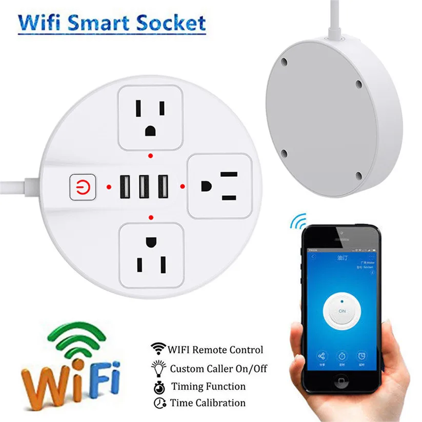 Kopen Goedkoop Ouhaobin Stekkers Adapters WiFi Smart Power Strip Alexa Wifi Surge Protector met 3 Usb poorten en 3 Outlets td0807 Dropship Prijs