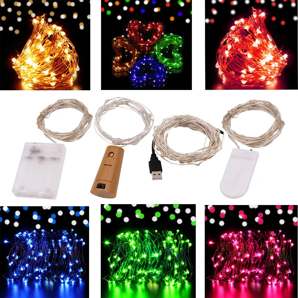 Kopen Goedkoop 10 m 5 m 2 m Batterij USB Aangedreven LED String Licht Zilver Draad Kerst Kerstverlichting Strip Xmas Lamp voor Party Bruiloft Decoratie Online.