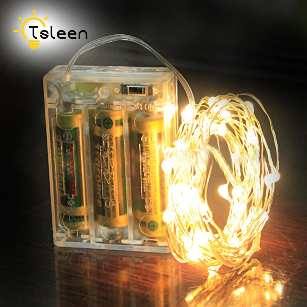 Beste Koop 10 M 5 2 Batterij USB Aangedreven LED String Licht Zilver Draad Kerst Kerstverlichting Strip Xmas Lamp Voor Party Bruiloft Decoratie Goedkoop
