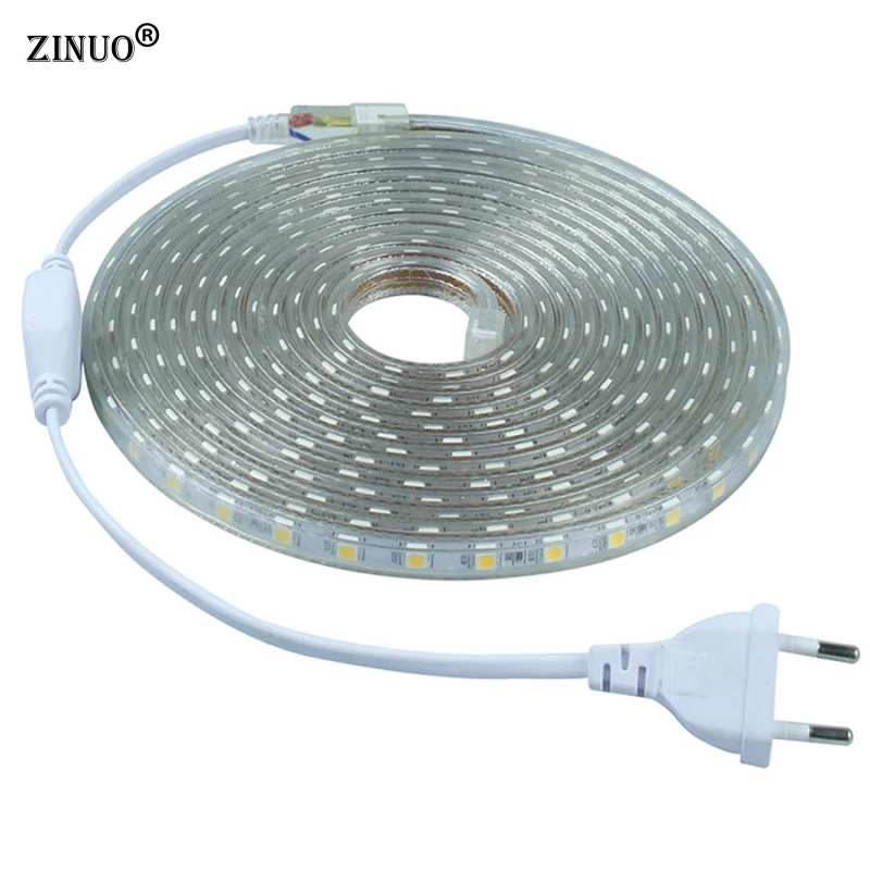 Kopen Goedkoop ZINUO 220 V 5050 Flexibele Led Strip Licht 1 M 2 M 3 M 4 M 5 M 6 M 7 M 8 M 9 M 10 M 15 M 20 M + Stekker, 60 leds m IP65 Waterdichte led Lint Online