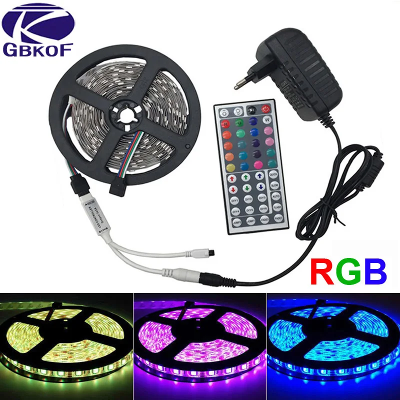 Kopen Goedkoop 5 m IP20 niet waterdicht Wit Warm Wit RGB Led Strip SMD 5050 DC 12 v Flexibele Licht lint tape met 44key IR afstandsbediening Online