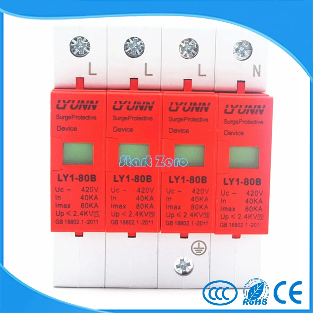 . Goede Kopen Hoge kwaliteit 4 p SPD 420 v 40KA ~ 80KA Huis Surge Protector Beschermende Low voltage Afleider Apparaat 3 p + N Goedkoop.