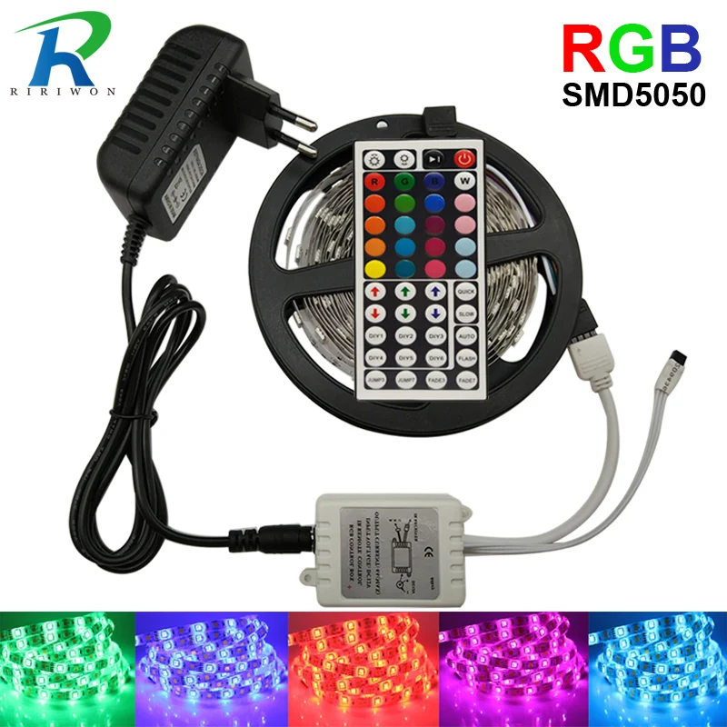 Kopen Goedkoop LED Strip Licht SMD 5050 RGB Strip Lint Diode Tape RGB 5050 DC 12 v 5 m 10 m Flexibele strip Volledige Set DIY Controller en Adapter Prijs