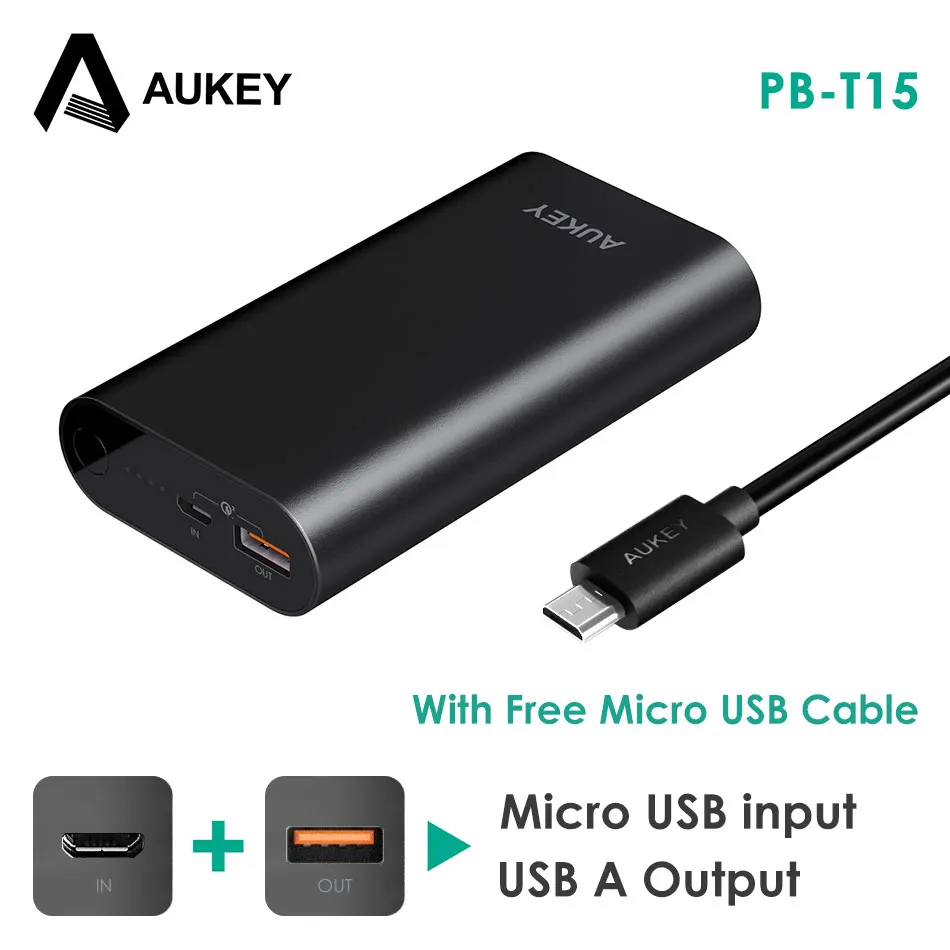 Beste Koop AUKEY Quick Charge 3.0 Power Bank 10050 mAh Batterij Twee Manier Quick Opladen Powerbank Draagbare Oplader voor Galaxy S8 Xiaomi Meizu Goedkoop