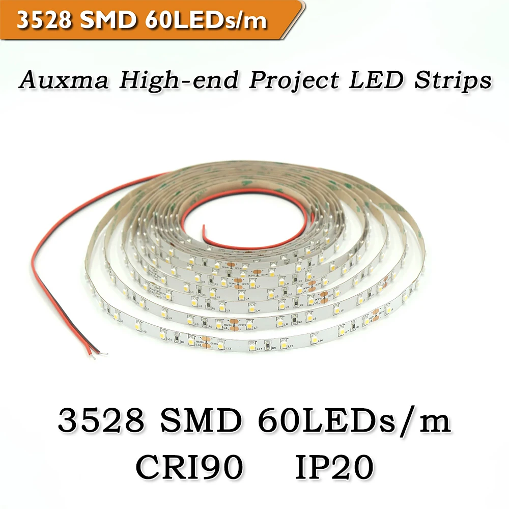 Beste Kopen Auxma 3528 CRI90 60 LEDs m IP20 DC12V 24 v 300 LEDs Reel, 5 meter Reel niet waterdicht LED Strip voor binnen woonkamer slaapkamer hotel Goedkoop