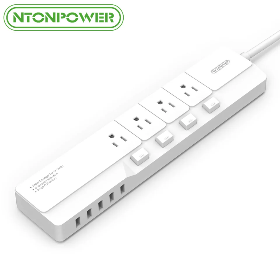Goede Koop NTONPOWER NSJ US Plug Power Strip met Usb oplader Surge Protector 4 AC Outlets Individuele Schakelaar Gecontroleerde 5 USB Opladen poort Goedkoop