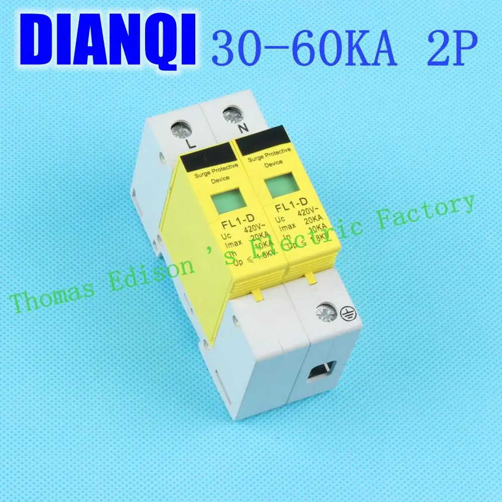 Goede Koop SPD 2 P 30KA ~ 60KA D ~ 420VAC Huishoudelijke Overspanningsbeveiliging Beschermende Lage voltage Afleider Apparaat Overspanningsbeveiliging Beschermende apparaat Goedkoop