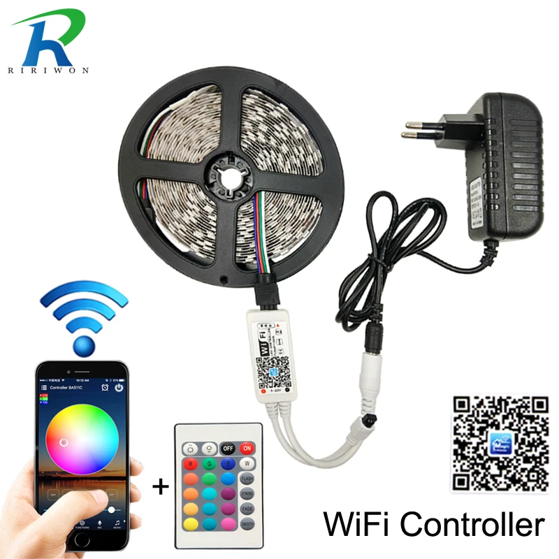 . Goede Koop WiFi RGB LED Strip 12 V Flexibele LED Lint SMD 2835 Waterdichte Strip Touw String Lamp Licht + LED WiFi Controller + EU Adapter Goedkoop.