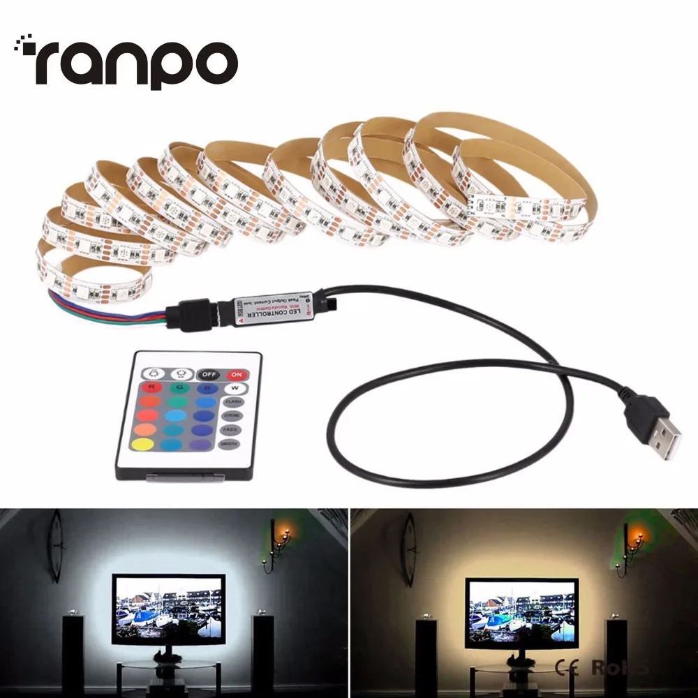 Goede Kopen 5050 SMD DC 5 V USB Power LED Strip Licht Voor TV achtergrondgeluid Verlichting Indoor Home Decor Verlichting + USB 24Key Controller Remote 1 M Goedkoop