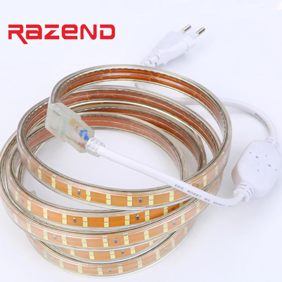Goede Kopen 156 leds m 220 V led strip Dubbele Rij SMD2835 Waterdichte led tape licht 1 m 2 m 5 m 10 m 15 m 20 m 50 m 100 m met EU power plug Goedkoop