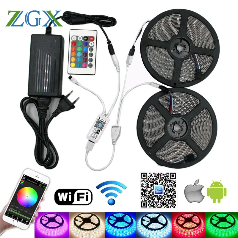 Kopen Goedkoop ZGX Wifi Controller 5050 RGB LED Strip licht 60led m neon lamp Waterdicht Decor Flexibele Tape diode lint DC 12 V adapter set Online