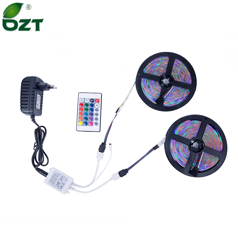 Beste Koop RGB LED Strip 5 m 10 m (2*5 m) SMD 3528 2835 LED Light IR Afstandsbediening 12 v Power Adapter Flexibele Light Led Tape Thuis Decoratio Goedkoop