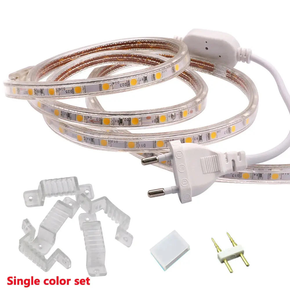 Goede Koop SMD 5050 led strip 220 V flexibele 60 leds m licht 1 m 5 m 10 m 15 m 20 m 100 m stekker warm wit wit RGB waterdichte Lint tape Goedkoop