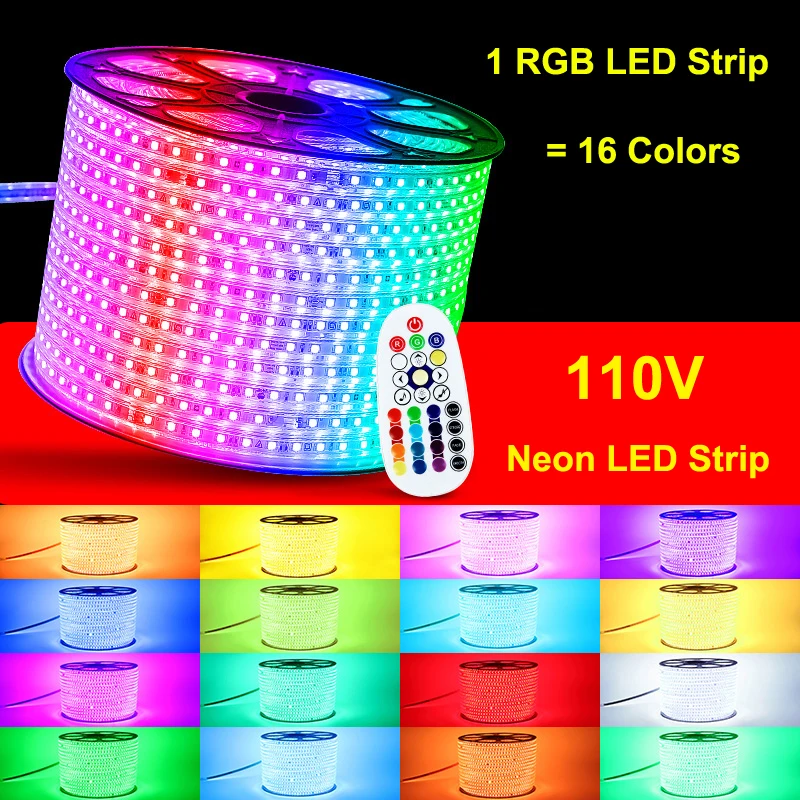 Kopen Goedkoop Neon RGB LED Strip Flexibele 110 v SMD5050 Afstandsbediening Type RGB Neon Light AC110V Home Decor Waterdichte 1M 5M 10M 20M Lichten Prijs