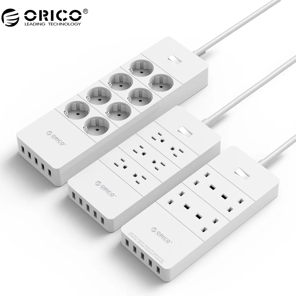 Kopen Goedkoop ORICO Power Strip EU Plug 4 6 8 Outlet Overspanningsbeveiliging EU Power Strip met 5x2. 4A USB Super Charger Poorten Wit (HPC V1) Online