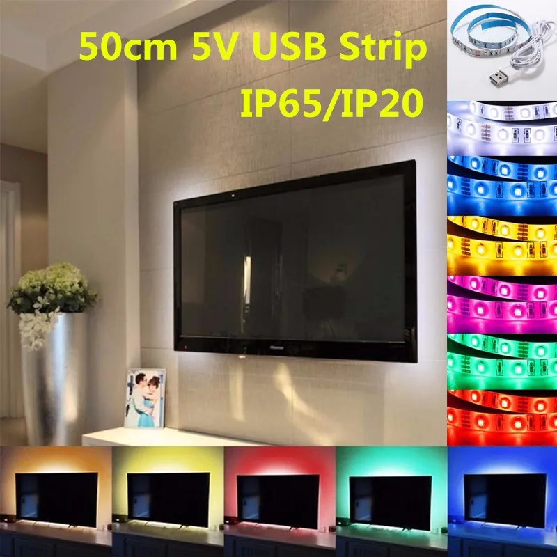 . Beste Kopen 50 cm 30 licht 5 v USB Power LED Strip licht RGB 3528 SMD HDTV TV Desktop PC Scherm Backlight amp; vooringenomenheid verlichting NIET Waterdicht Goedkoop.