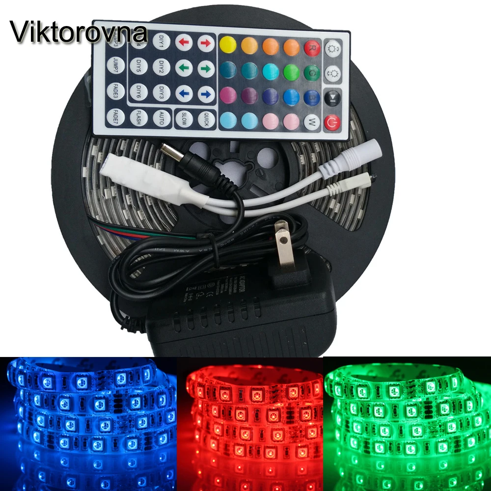 Goede Koop 1 5 M 5050 SMD RGB LED Strip Licht ip65 niet waterdicht Fita LED Licht Lint Lamp 44Key Controller 12 V Adapter Leveren Goedkoop