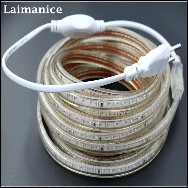 Beste Koop Hoge kwaliteit 3014 led strip AC220V 120 leds M IP67 waterdichte outdoor tuin tape touw licht met EU Power plug hoge helderheid Goedkoop