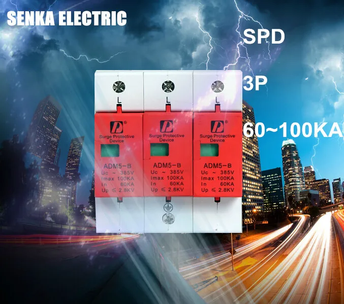 Beste Koop SPD 60 100KA 3 P afleider bescherming apparaat elektrische huis overspanningsbeveiliging D ~ 420 V AC Goedkoop