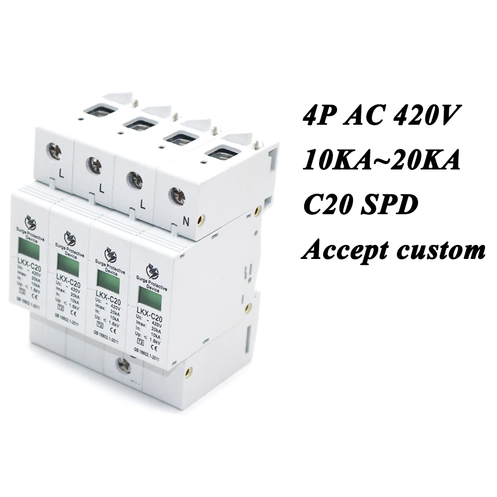 . Beste Kopen Hot koop C20 4P 10KA ~ 20KA ~ 420 V AC SPD Huis Overspanningsbeveiliging Beschermende Lage voltage Afleider Apparaat 3 P + N bliksembeveiliging Goedkoop.