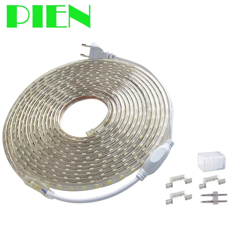 . Goede Kopen 220 V RGB LED Strip 5050 Waterdichte IP67 Touw licht Outdoor 1 m 2 m 3 m 5 m 10 m 15 m 20 m Blauw Warm wit + stekker Gratis verzending Goedkoop.