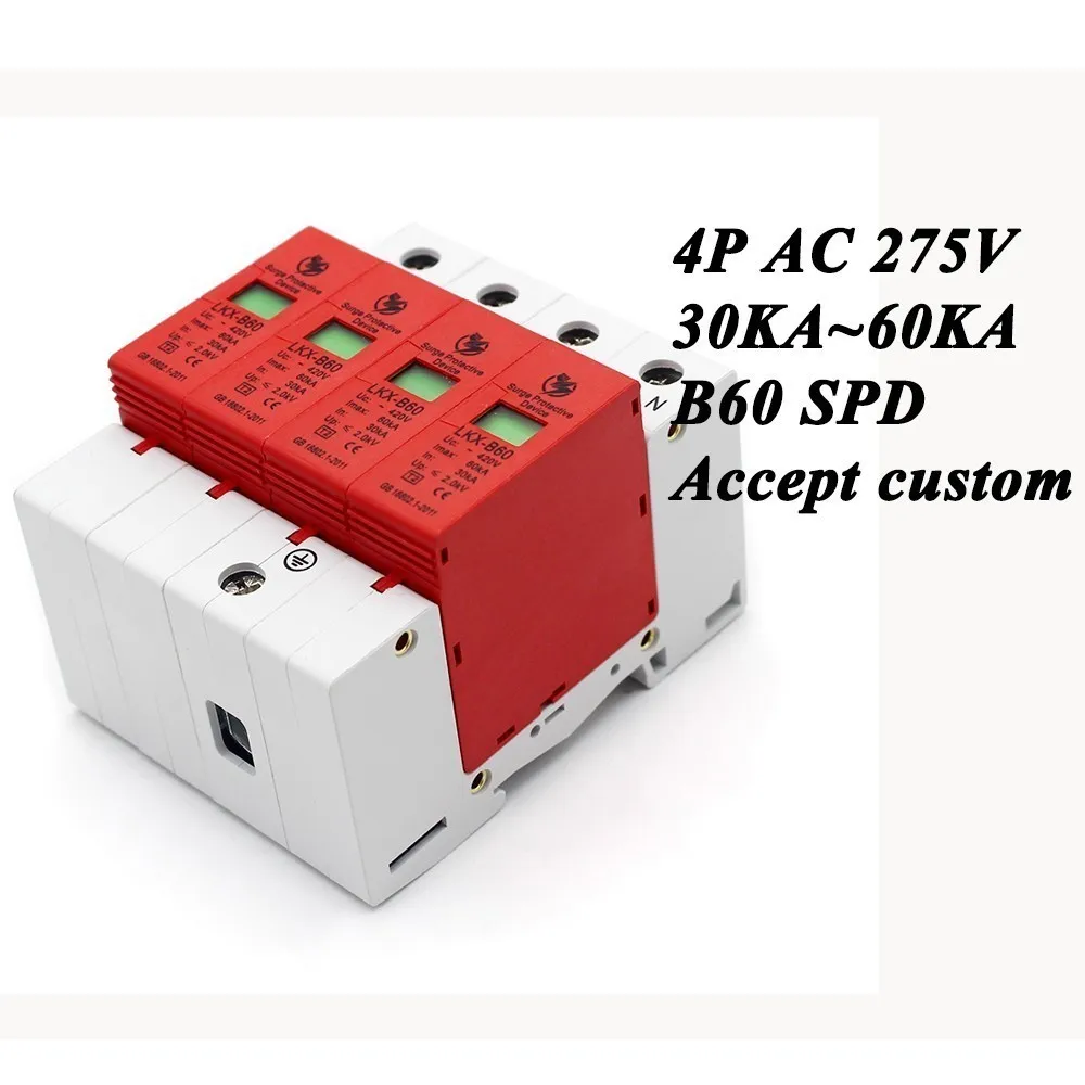 Beste Koop B60 4P 30KA ~ 60KA ~ 275 V AC SPD Huis Overspanningsbeveiliging Beschermende Lage voltage Afleider Apparaat 3 P + N bliksembeveiliging Goedkoop.