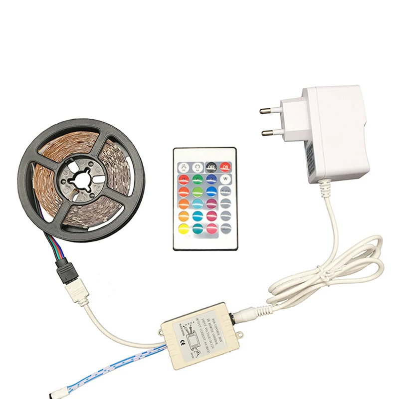 . Kopen Goedkoop SMD3528 5 m 300 LEDs Flexibele RGB LED Strip Licht 24key IR Afstandsbediening 12 v 2A Power Adapter Lint home decoratie LED strip Online.