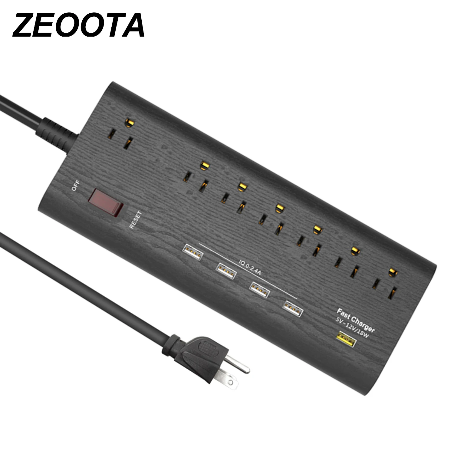 Goede Kopen Power Strip Surge Protector 7 AC USB Outlets US Plug Socket met USB 4 Poorten en Quick Charge 3.0 Poort 6ft 1.8 m Verlengsnoer Goedkoop