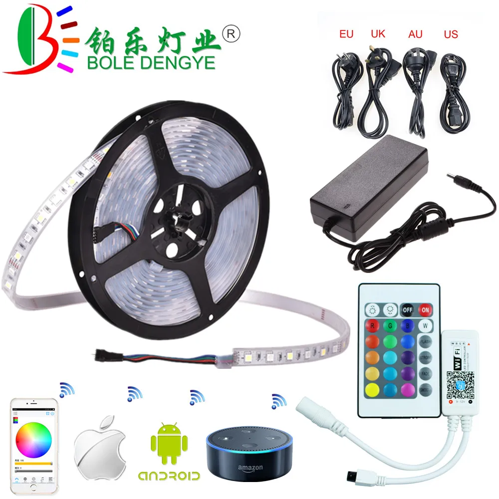 Kopen Goedkoop 5 M WiFi RGBW RGBWW LED Strip IP67 Waterdichte Flexibele Diode Tape 12 V 60 leds m Lichtslang + WiFi RGB Controller + 12 V Power Adapter Prijs