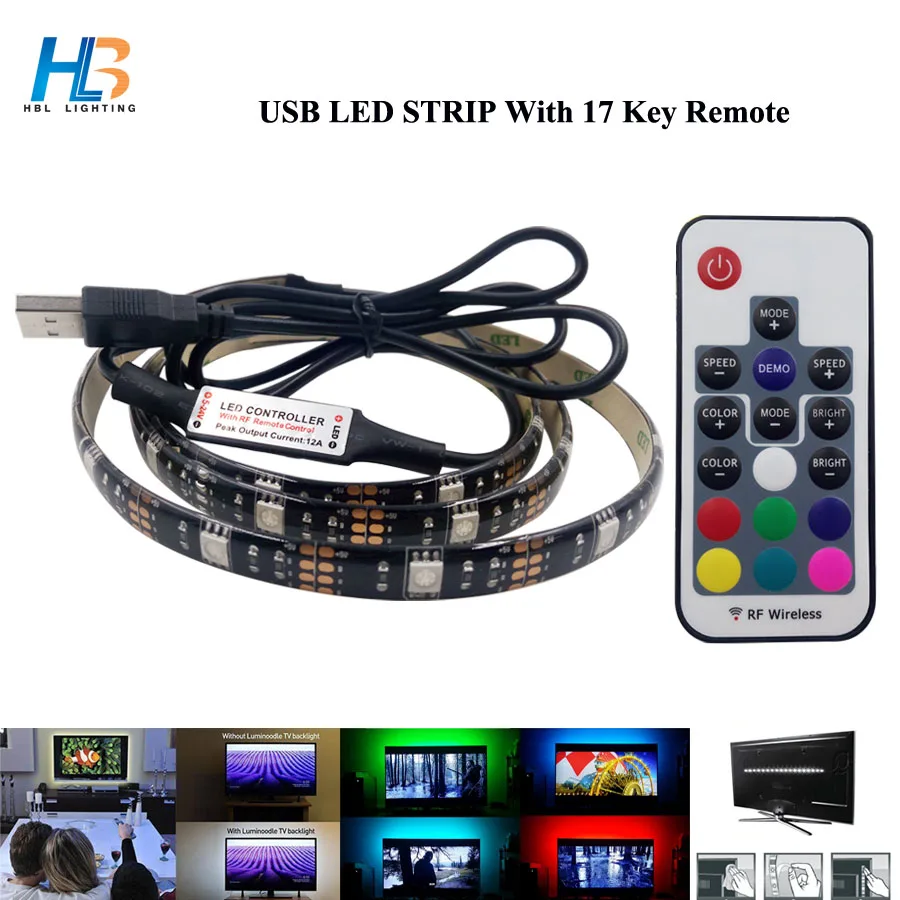 Kopen Goedkoop HBL USB LED Strip 5050 RGB led lint 1 M 2 M led tape DC 5 V TV Achtergrond led strip licht diode tape 17key of 3key Controller Prijs