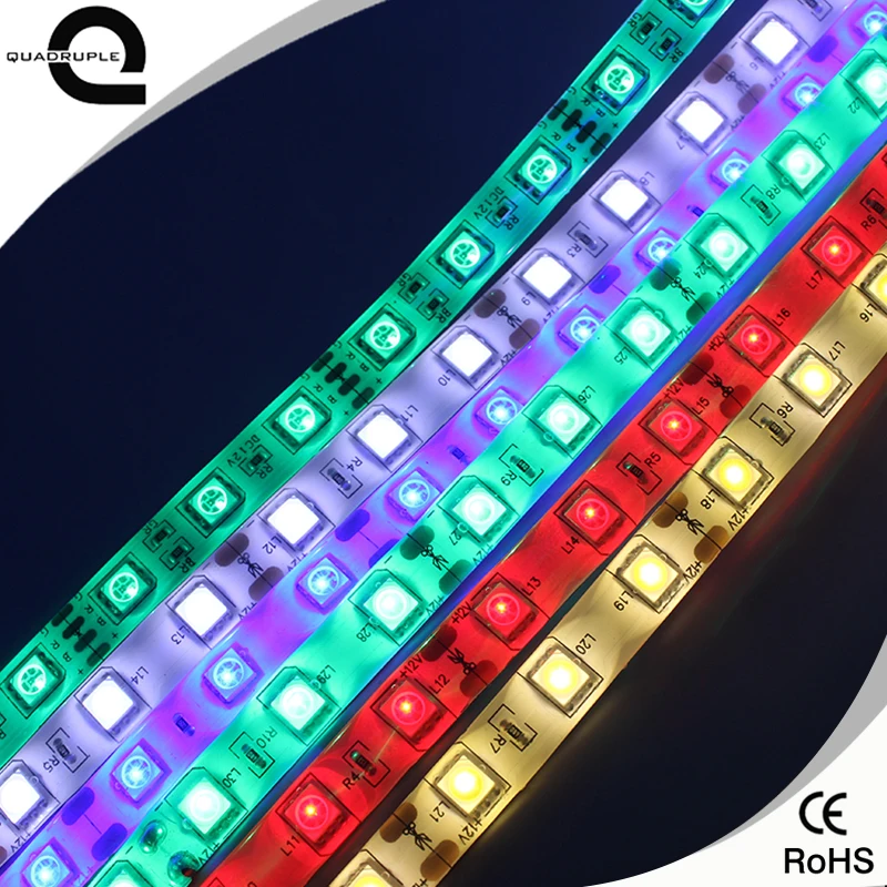 Beste Kopen Quadruple DC12V 5050 2835 Led Lamp 1 m LED Strip Licht SMD Niet waterdicht Tape Lint 60 leds m Fita Streep Kleur Optionele Goedkoop