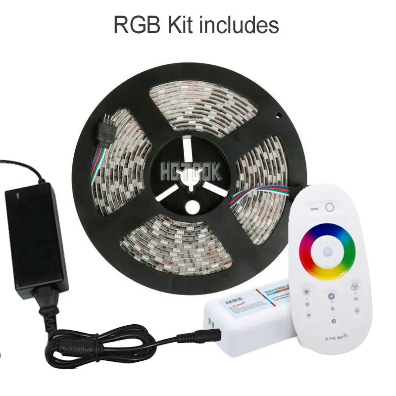 Goede Koop RGB RGBW Led Strip Waterdicht 5050 smd 5 M 300 Leds Tapes Lint + RF Touch Afstandsbediening + 12 V 5A Adapter Supply Kit Goedkoop
