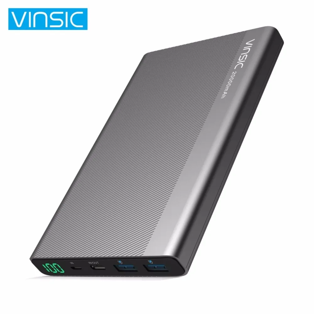 Beste Kopen VINSIC 2000 MAH Type C Dual Usb poorten Externe Power Bank Hoge Sterkte Shell Acculader Voeding voor Smartphones Goedkoop
