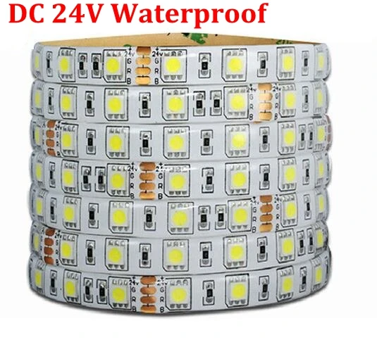 Kopen Goedkoop 5 m DC24V IP65 Waterdichte Flexibele LED Strip SMD 5050 300led Verlichting Led Tape Lint Outdoor Decoratie Touw WarmWhite Wit RGB Online