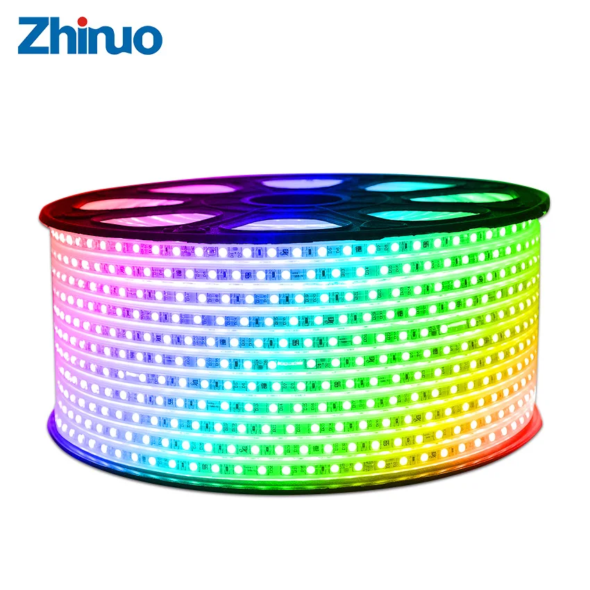 Beste Kopen Hoge Kwaliteit LED Strip SMD5050 Waterdicht Soort RGB 60 Leds m AC220V Flexibele Light + Afstandsbediening Partij Decoratie licht Thuis Goedkoop