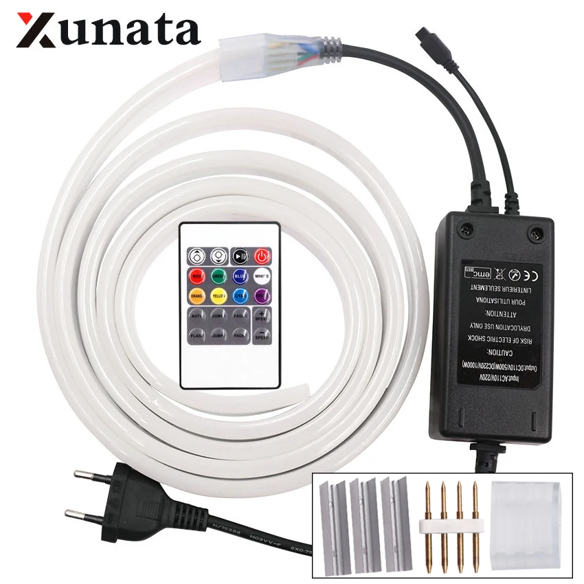 Goede Kopen RGB LED Neon Strip 220 V Dimmer Controller 2835 5050 Flexibele lint Waterdichte Decoratieve Touw 5 m 20 m 100 m Power Plug Clip kit Goedkoop