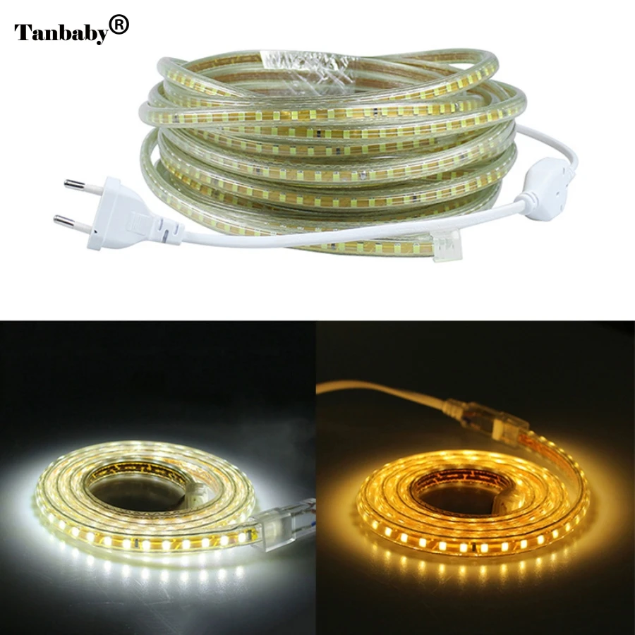 Goede Koop 220 V SMD 2835 Flexibele Led Strip Licht 1 M 2 M 3 M 4 M 5 M 6 M 7 M 8 M 9 M 10 M 15 M 20 M + Stekker, 120 leds m IP65 Waterdichte led Lint Goedkoop