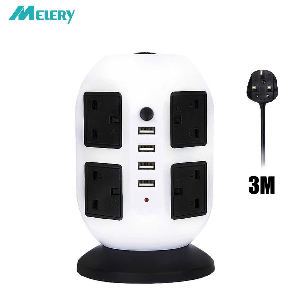 Kopen Goedkoop Verticale Power Strip Adapter Surge Protector 8 AC UK Outlets Socket met USB 4 Poorten Overbelasting Bescherming 2 m 6ft Verlengsnoer Online