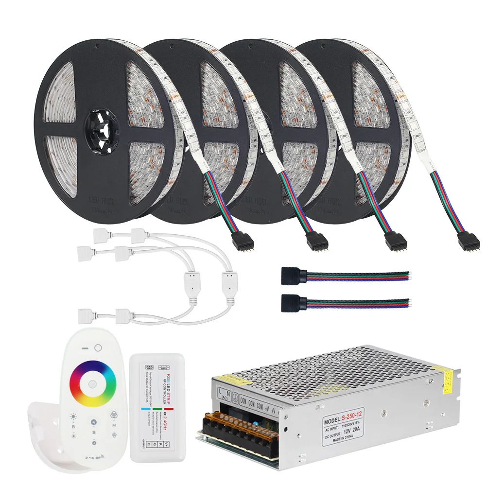 Beste Koop DC12V 5050 LED Strip RGB RGBW RGBWW 5 m 10 m 20 m Set LED Strip 5050 RGB 60 LEDs m + Touch Remote Controller + 12 v Power adapter Goedkoop