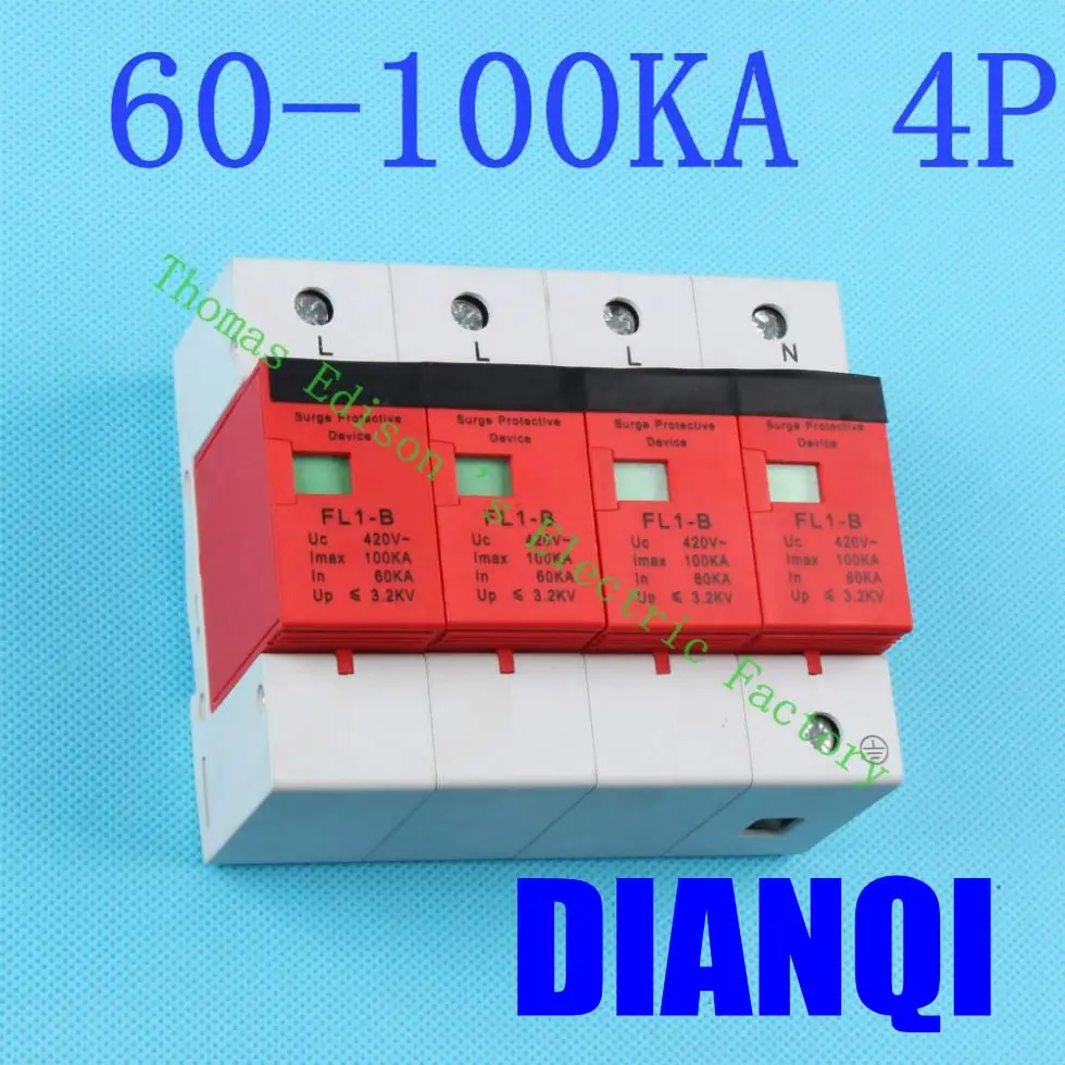 Beste Kopen Hoge kwaliteit! SPD 4 P 60KA ~ 100KA D ~ 420VAC Huishoudelijke Overspanningsbeveiliging Beschermende Lage voltage Afleider Apparaat Goedkoop
