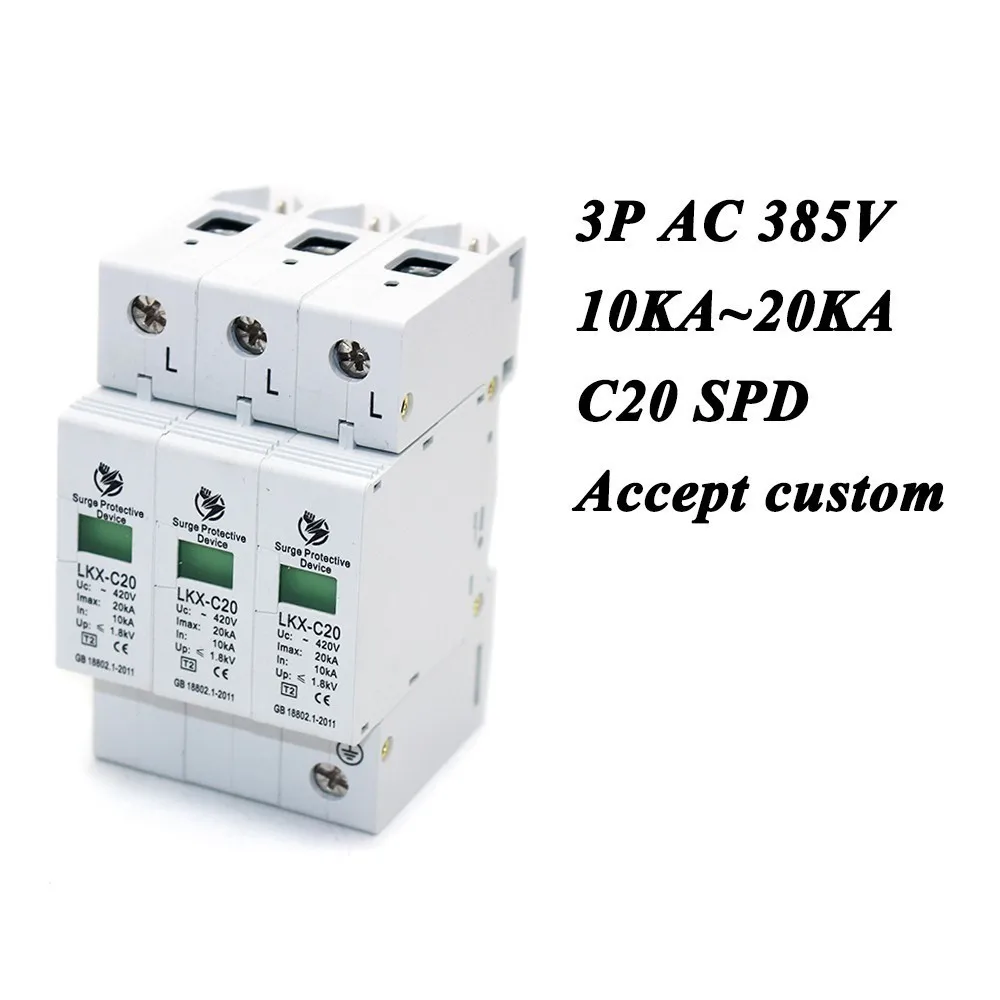 Kopen Goedkoop Hot koop C20 3P 10KA ~ 20KA ~ 385 V AC SPD Huis Overspanningsbeveiliging Beschermende Lage voltage Afleider Apparaat 2 P + N bliksembeveiliging Online
