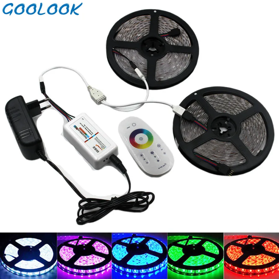 Kopen Goedkoop LED Light Strip RGB SMD Led 5050 RGB LED Licht Waterdichte Tape Emitting Diode Tape Lint DC 12 v RGB strip Controller Volledige Set Online