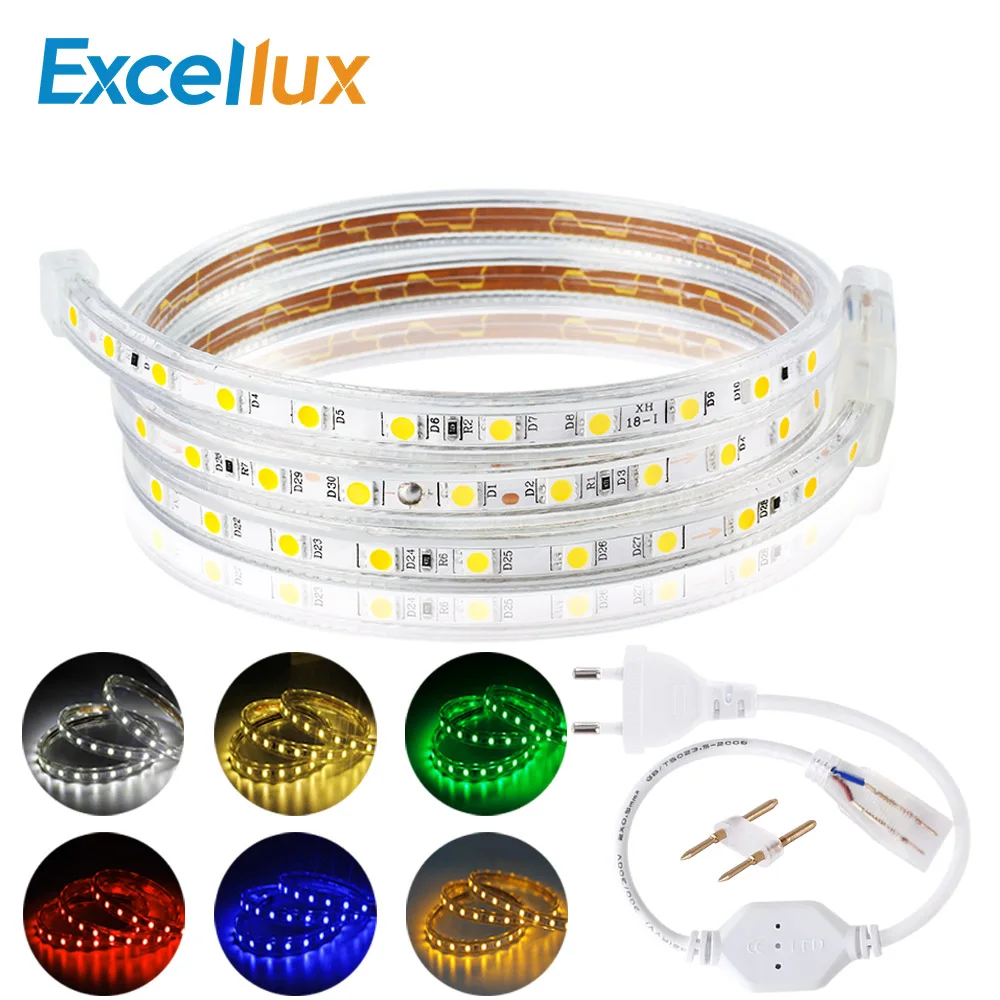 Goede Kopen AC 220 v 5050 LED Strip Flexibele Light 60 leds m Waterdichte Led Diode Tape LED Licht Met Power plug 1 m 2 m 3 m 5 m 10 m 15 m 20 m 25 m Goedkoop