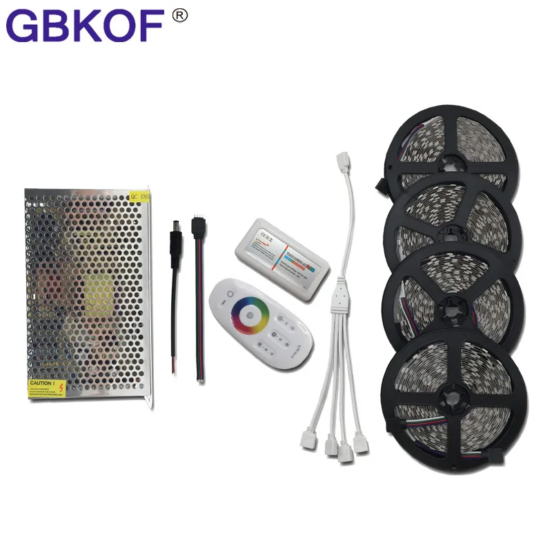 Kopen Goedkoop Hot 10 M 15 M 20 M 5050 RGB LED Strip 60 leds m Niet waterdichte diode tape + RF Touch Afstandsbediening RGB Controller + AC110 220 V DC12V Adapter Online