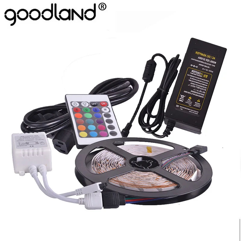 Beste Kopen RGB LED Strip Licht SMD5050 5 m 60LED m Flexibele Tape Waterdichte Neon Lint IR Remote Controller Power Adapter DC12V 5A Goedkoop.
