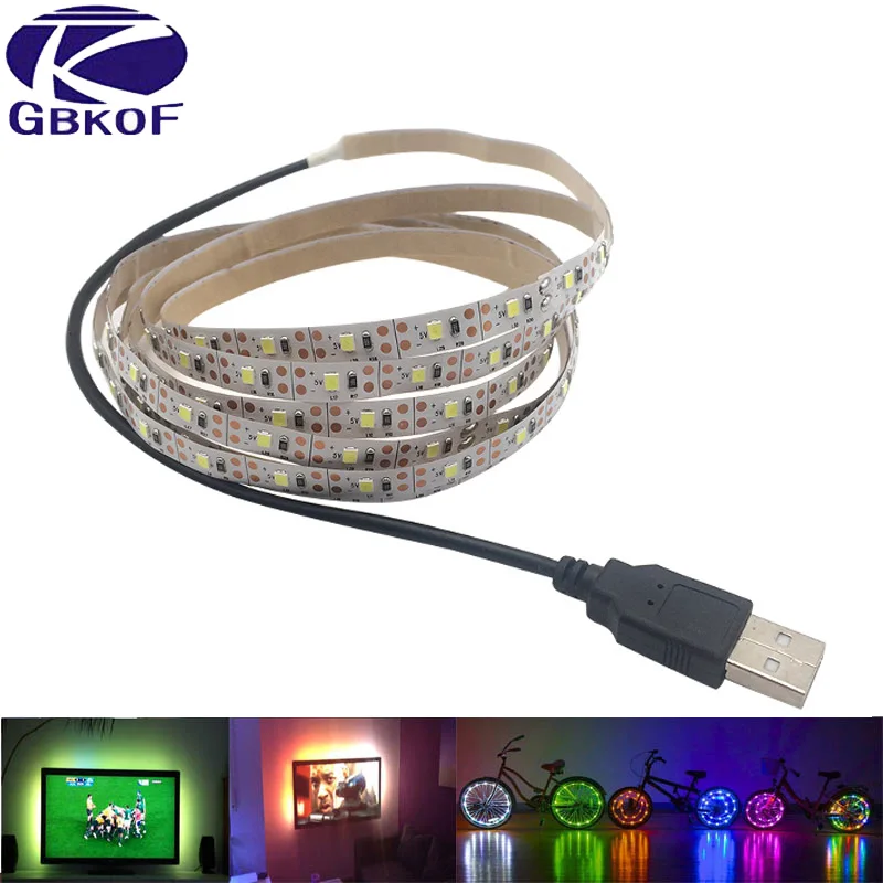 Beste Koop 5 v 50 cm 1 m 2 m 3 m 4 m 5 m USB Kabel Power LED strip licht lamp SMD 3528 Kerst bureau Decor lamp tape Voor TV Achtergrond Verlichting Goedkoop