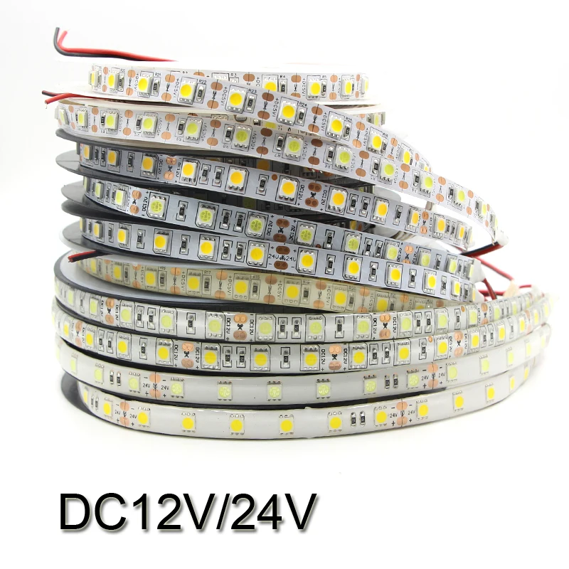 . Beste Kopen Led strip 5050 fiexibel licht 60led m dc 12 v 24 v tape string wit, warm wit, rood, groen, blauw, geel free verzending Goedkoop.