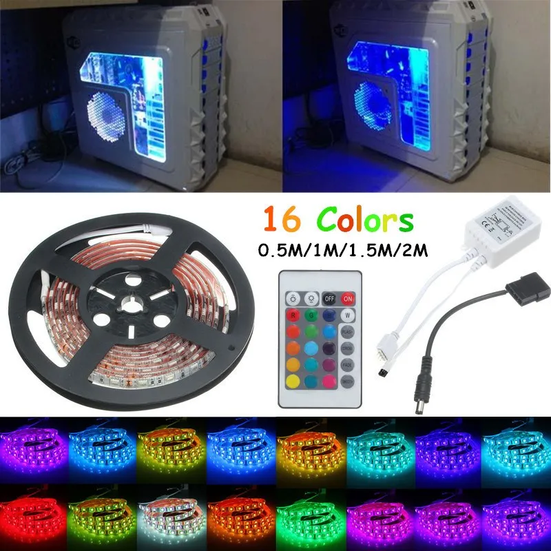 Kopen Goedkoop 0.5 M 1 M 1.5 M 2 M Super Heldere RGB 5050 SMD 16 Kleuren LED Strip Computer PC Chassis Verlichting Met 24 Toetsen Afstandsbediening 12 V Online